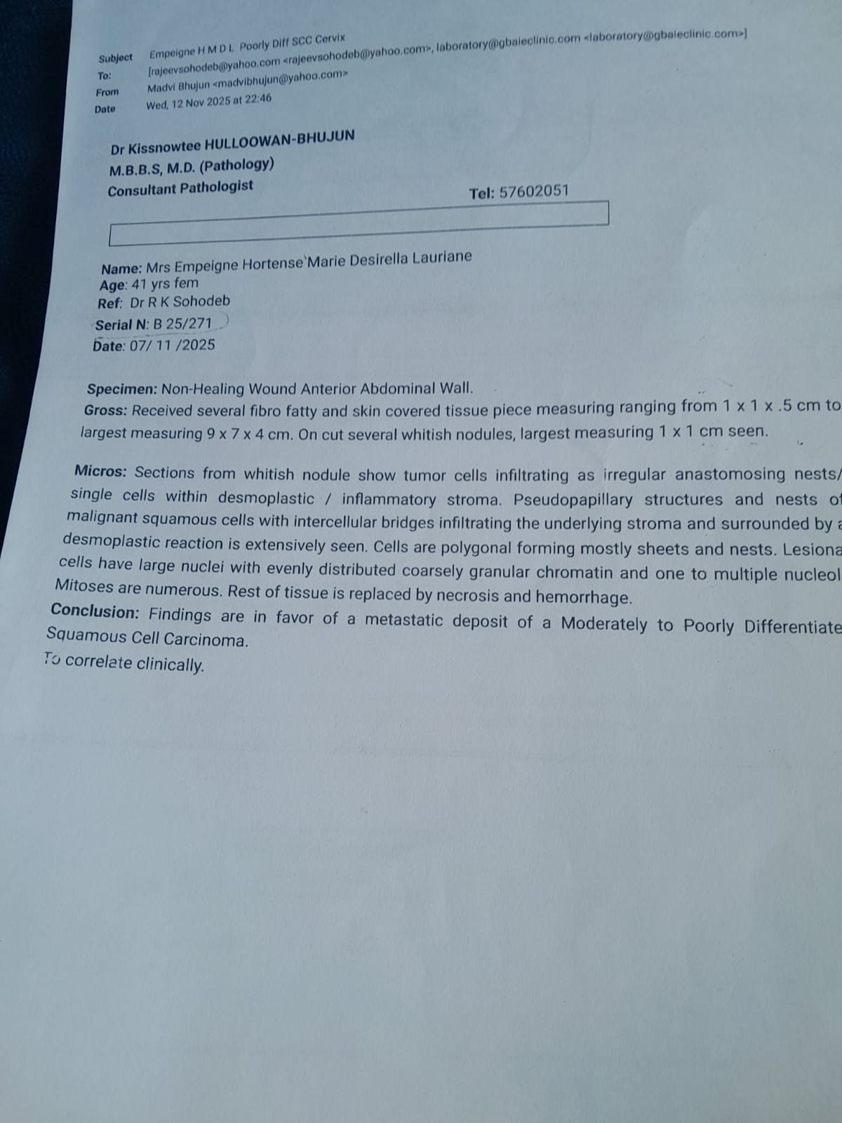 Mrs Laurianne Empeigne (41) is currently battling cervical cancer (Squamous Cell Carcinoma).